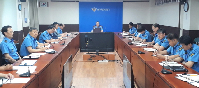 ▲완도해양경찰서는 제 13호 태풍 “링링” 북상에 따라 상황판단회의를 가졌다.ⓒ완도해경