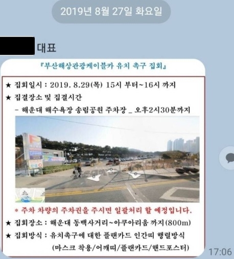 실제로 주민들이 아닌 직원들에게도 케이블카 찬성집회의 장소와 시간, 집회 방식 등의 내용이 담긴 사진이 배포된 것으로 알려졌다. 또한 사진에는 '주차 차량의 주차권을 주시면 일괄처리할 예정입니다'라고 적혀 있어 사실상 편의를 제공해 사람들을 모집한 것으로 보여지고 있다.