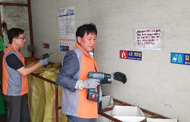 조영환 노조위원장은 “분리수거 안내 표지판을 직접 제작해 부착해 보니 재활용품 분리장 내부가 한결 깔끔해지고 주민들도 좋아하셔서 보람을 느꼈다”고 말했다.