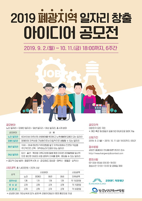 강원랜드 희망재단(이사장 고광필)은 국민들을 대상으로 ‘2019년 폐광지역 일자리 창출 아이디어 공모전’을 실시한다고 10일 밝혔다.