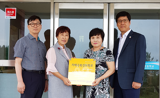 동해시(시장 심규언) 치매안심센터는 지난 9일, 동해시 치매극복 선도학교 제1호로 지정된 창호초등학교(교장 안춘매)에서 현판 전달식을 가졌다.