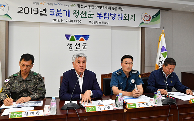 강원 정선군(군수 최승준)은 17일 군청 소회의실에서 최승준 정선군수, 김문영 정선경찰서장, 김태완 8087부대 1대대장, 통합방위 관계자 등이 참석한 가운데 올 3분기 통합방위회의를 개최했다.