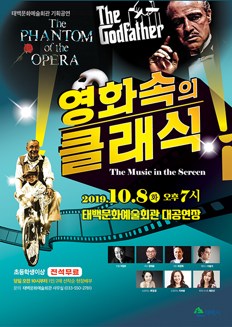 강원 태백문화예술회관은 10월 기획공연의 하나인 ‘영화속의 클래식’이 오는 10월 8일 오후 7시 태백문화예술회관 대공연장에서 개최된다고 밝혔다.
