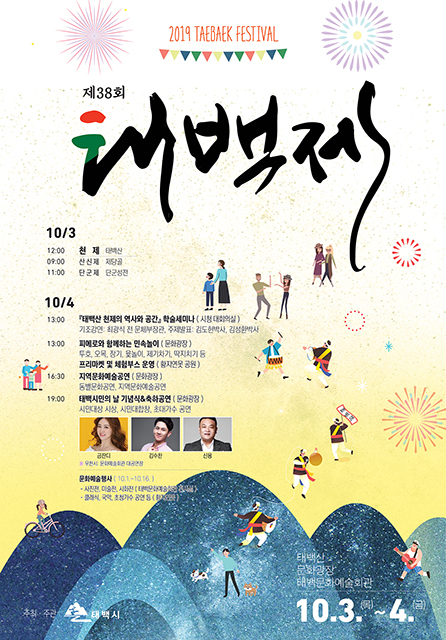 지역 민속 문화 계승‧발전과 시민 소통‧화합의 장인 ‘제38회 태백제’가 오는 10월 3일과 4일 양일간 시내 일원에서 개최된다.