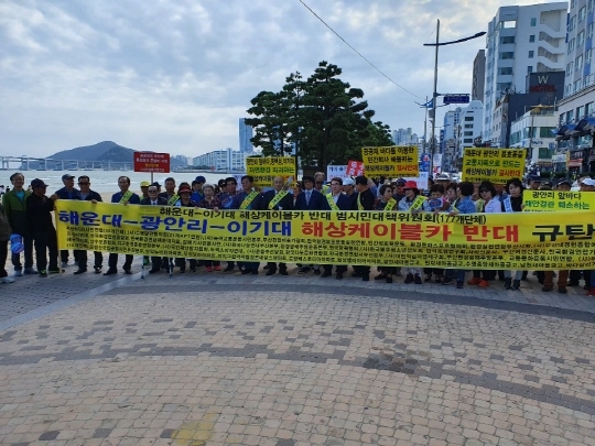 '해운대~이기대 해상케이블카 반대 범시민대책위원회'는 26일 오후 3시 광안리해수욕장 만남의 광장에서 300여 명이 참석한 가운데 발기인규탄대회를 열고 본격 활동에 들어간다고 밝혔다.
