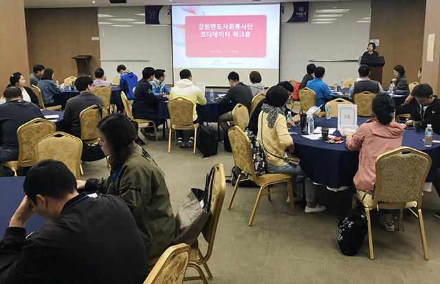 강원랜드(대표 문태곤)가 충북 제천에서 지난 26일부터 1박 2일 일정으로 사내 팀·테마 봉사단 리더인 코디네이터 40여 명을 대상으로 ‘2019년도 사회봉사단 코디네이터 역량강화 교육’을 실시했다고 27일 밝혔다.