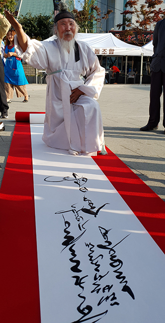 한편 이번 축제에서는 ‘21세기 선비 할아버지’로 알려진 김일명 공재서당 훈장이 개막행사에 특별 출연해 서예 퍼포먼스와 황부자 며느리축제를 축하하는 축시, 무예 시범을 펼치고 서예작품을 관광객들에게 즉석에서 선물해 눈길을 끌기도 했다.