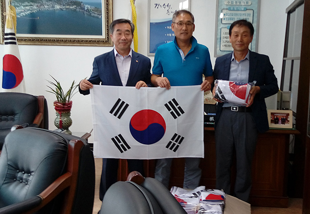 동해 묵호동주민자치위원회와 묵호동은 지난달 30일, 동해시수산업협동조합(조합장 김동진)을 방문해 태극기 300매를 전달했다.