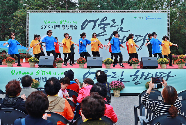 ▲함께 배우고 즐겁게 나누는 ‘2019 태백 평생학습 어울림 한마당’ 행사가 지난 5일 태백시 평생학습관에서 류태호 태백시장, 평생학습인, 자원봉사자, 시민 등이 참석한 가운데 성황리에 열리고 있다. 이번 행사는 평생학습관 야외에서 전시·체험·학습장터와 버스킹 공연을 비롯해 대강당에서는 성인문해대잔치가 열려 그동안 배우고 익힌 솜씨를 선보였다. ⓒ태백시