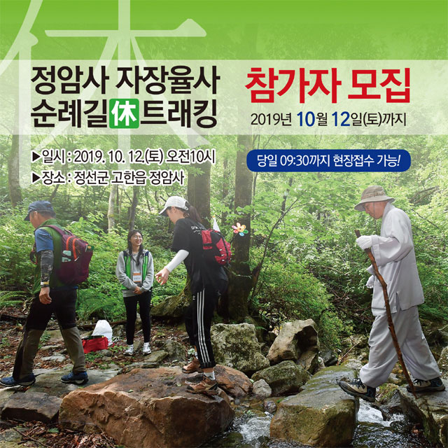 자장율사 순례길 트레킹은 당일 오전 9시30분까지 현장접수도 가능하며 순례길은 1500년 전 신라 시대 고승인 자장율사의 숨결을 느끼며 힐링할 수 있는 기회로 마련됐다.