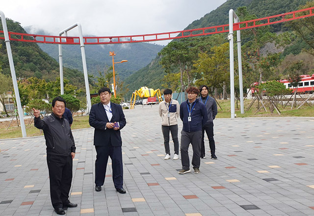 ▲홍종학 정선군시설관리공단 이사장이 시설물 안전대책을 살펴보고 있다. ⓒ정선군