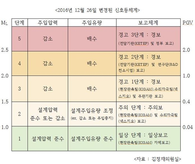 해외에서도 지열발전소를 운영하기 위해 신호등체계를 만들어 미소지진에 따른 안전관리를 철저하게 하고 있다. 스위스 발젤의 경우에도 신호등체계에따라 3.4규모 미소지진이 발생한 직후 중단됐고 정밀조사를 통해 영구 폐쇄된 바 있다.