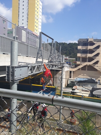 이 사고로 전력선이 차단되면서 기장역을 통과하는 상하행선 열차 운행은 모두 중단됐다.