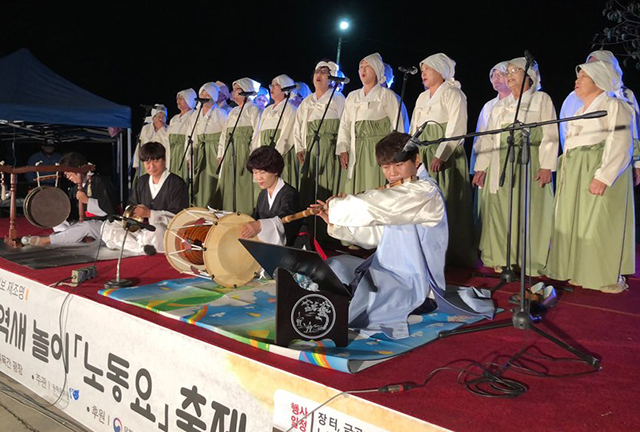 동해시 삼화6통 금곡마을 금곡목간 광장에서 열린 이날 축제는 마을 경로당 어르신들로 구성된 노동요 노래패 ‘금곡걸즈’가 노동요를 발표했다.