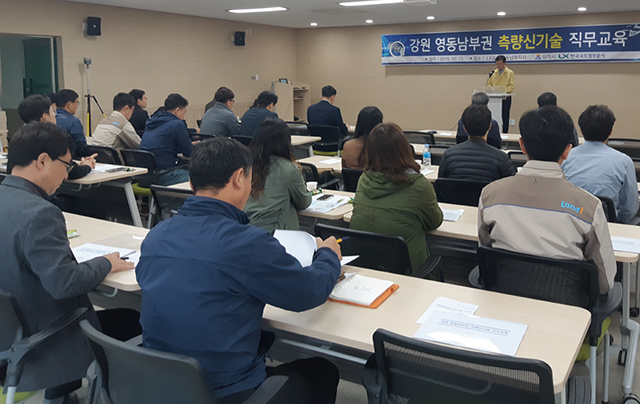 삼척시가 지난 15일 한국국토정보공사 영동남부지사에서 강원 영동남부권 지적측량, 공간정보 담당자들을 대상으로 측량신기술 직무교육을 실시했다.