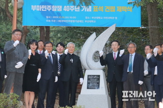 이날 경남대 기념행사에 이어 부마민주항쟁 발생지인 부산대에서는 제1 사범관 인근 녹지공간에서 부마민주항쟁 40주년 기념 표석 제막식도 열렸다.