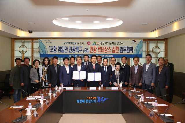 이날 협약식은 이강덕 포항시장, 김성조 경북 문화관광공사 사장을 비롯해 서재원 포항시의회 의장 및 의원, 영일만 관광특구 유관단체 대표 등 20여명이 참석했다.