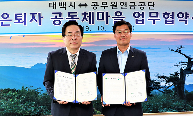 강원 태백시는 21일 시청 소회의실에서 공무원연금공단과 은퇴자 공동체 마을 조성 업무협약식을 가졌다.