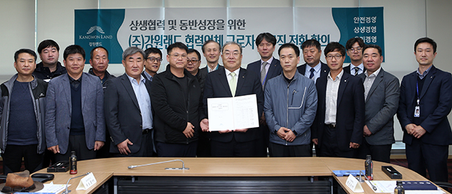 강원랜드(대표이사 문태곤)는 22일 강원랜드 본사사옥에서 한형민 부사장, 협력업체 근로자대표단, 외부전문가들이 참석한 가운데 시설분야 협력업체 근로자대표단과 자회사 방식 정규직 전환에 합의하고 합의서를 교환했다고 밝혔다.