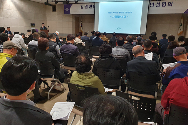 ▲지난 18일 태백시청 대회의실에서 진행된 강원랜드 지역상생 협력사업 주민설명회. ⓒ프레시안