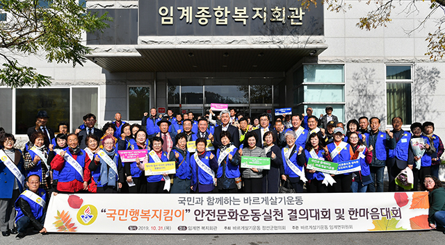 바르게살기운동 정선군협의회는 31일 강원 정선군 임계면 종합복지회관에서 최승준 정선군수, 나길주 회장, 기관단체장, 회원 등 150여 명이 참석한 가운데 안전문화운동 실천 결의대회를 가졌다.