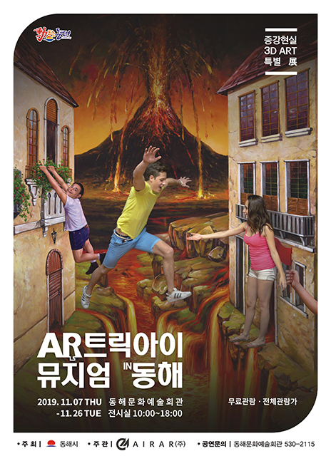 먼저 오는 7일부터 26일까지 동해문화예술회관 전시실에서, 평면의 그림이 입체가 되어 보이는 착시미술 체험공간을 만드는 증강현실 3D 아트 특별전 ‘AR 트릭아이 뮤지엄 IN 동해’(무료체험)가 열린다.