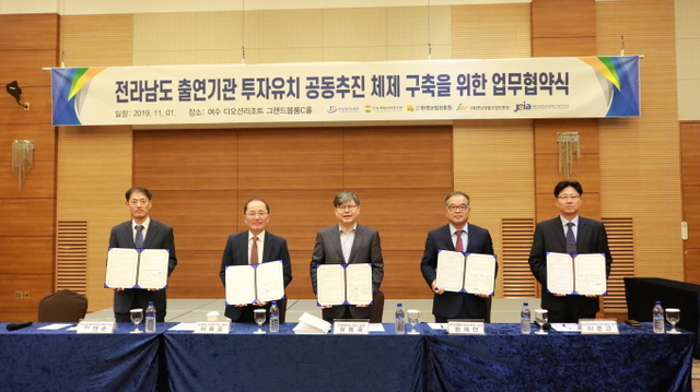 (재)전남테크노파크(원장 유동국)는 전남테크노파크, 전남생물산업진흥원, 전남정보문화산업진흥원, 녹색에너지연구원, 전남환경산업진흥원 간 투자유치 공동추진을 위한 업무협약을 여수 디오션리조트에서 체결했다고 6일 밝혔다.