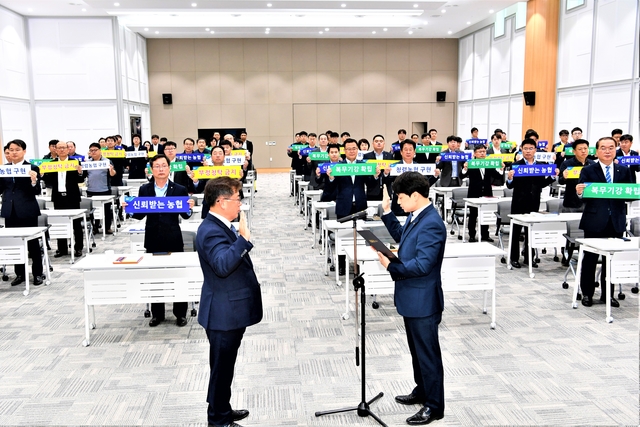 경북농협(본부장 도기윤)은 지난 11일 지역본부 대회의실에서 중앙회, 경제지주, NH농협은행, NH농협생명·농협손해보험, 경북검사국 등 직원 150여명이 ′2019년 윤리경영 실천 결의대회′를 개최했다.