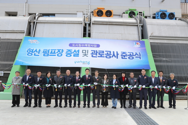이날 준공식은 이강덕 포항시장을 비롯한 서재원 시의회의장, 유관기관·단체장 및 주민 등 400여 명이 참석해 형산빗물펌프장 증설공사에 많은 노력을 기울여온 시공사와 감리사 등 유공자 3명에게 표창패를 전달했다.