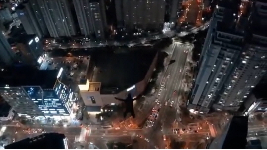 해당 영상에서 A 씨 등은 고층 건물 옥상에서 낙하산을 타고 맞은편 오피스텔 옥상을 향해 뛰어내리는 모습이 담겨있었다.