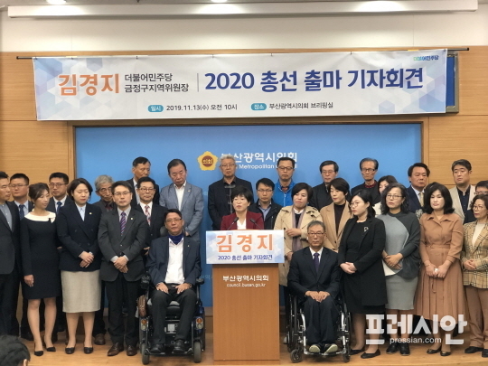 더불어민주당 김경지 금정구지역위원장은 13일 오전 부산시의회 3층 브리핑룸에서 기자회견을 열고 "다가오는 총선에서 기필코 승리하겠다"며 내년 총선출마를 공식 선언했다.