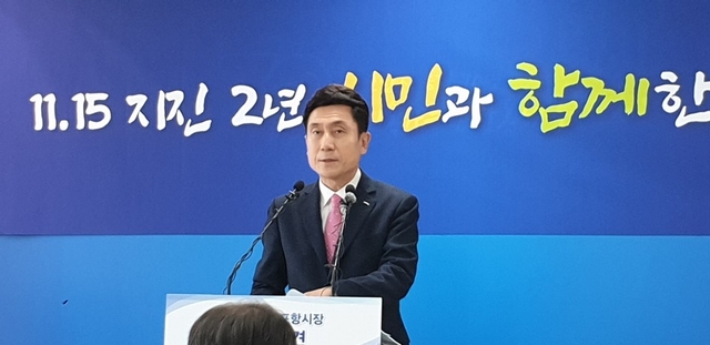 이강덕 시장은 13일 오전 10시 30분 포항시청브리핑룸에서 기자회견을 갖고 "지열발전으로 촉발된 지진으로 포항은 지난 2년간 막대한 고통을 감내해 왔다"고 말했다.