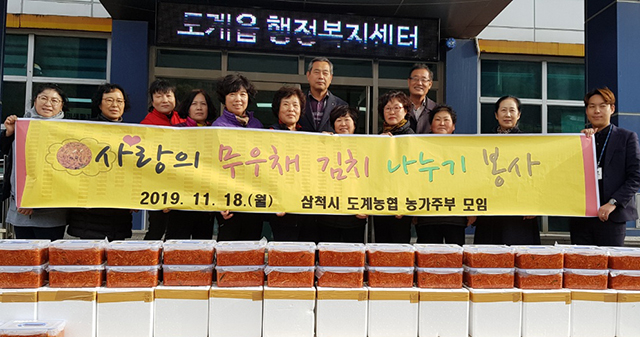 삼척시 도계농협(농협장 김성태)의 후원으로 지난 18일 도계농협 농가주부모임(회장 김금순)은 ‘사랑의 무우채 김치 나누기 봉사’ 활동을 실시했다.