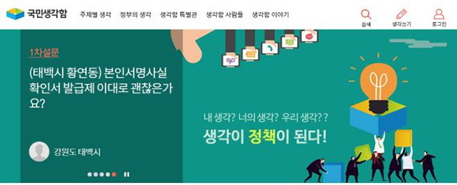 특히, 이번 설문조사는 ‘국민권익위원회’에서 운영하는 국민생각함 홈페이지 메인화면에 노출되는 등 많은 관심을 받고 있다.