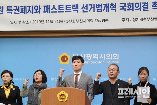 정치개혁부산행동은 21일 오후 2시 부산시의회 3층 브리핑룸에서 기자회견을 열고 "국회의원 특권폐지와 패스트트랙 선거법개혁 국회 의결을 촉구한다"고 밝혔다.