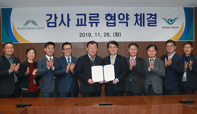 지난 26일 오후 4시, 인천국제공항공사 회의실에서 진행된 협약식에는 강원랜드 송석두 상임감사위원과 인천공항공사 김길성 상임감사위원을 비롯해 양 기관의 감사실・팀장 및 주요 관계자 10여 명이 참석했다.