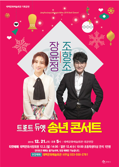 강원 태백문화예술회관 12월 기획공연 ‘장윤정&조항조 트로트 듀엣 송년 콘서트’가 오는 12월 21일 오후 5시 태백문화예술회관 대공연장에서 열린다.