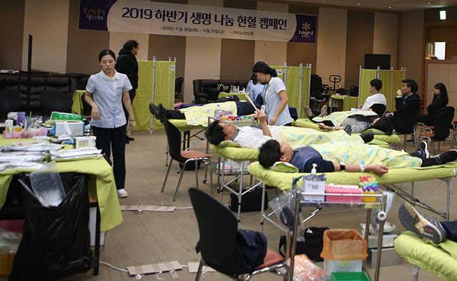 대한적십자사 강원혈액원 주최로 진행되는 이번 헌혈행사는 본사 행정동, 팰리스호텔, 마운틴콘도, 카지노미팅룸 등 리조트 곳곳에서 진행되고 있다.