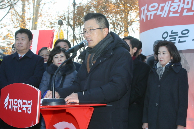 황 대표는 2일 청와대 앞에서 열린 현장 최고위원회의에서 "제가 단식을 시작할 당시 목표 세 가지 중, 지소미아(GSOMIA·한일 군사정보보호협정)는 연장됐다. 그러나 공수처법, 연동형 비례대표제 선거법에 대한 여권의 밀어붙이기는 아직 진행 중"이라며 "대한민국 지키기, 자유민주주의 수호를 위해 이 '양대 악법'을 반드시 막아내야 한다"고 주장했다.