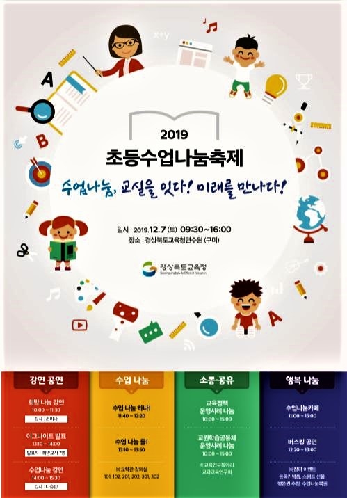 이번 축제는 수업전문성 신장과 수업 나눔 문화에 대한 열정으로 경북 도내 초등 교원 800여명이 자발적으로 참여해 색다른 교실수업문화를 접하고 새로운 경북교육의 미래를 만날 수 있다.