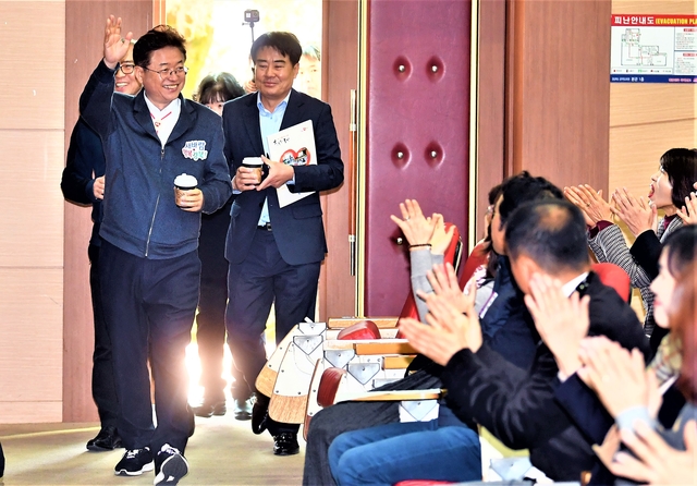 이철우 도지사는 대화콘서트 전 스탠딩 현안보고청취, 교육원 시설을 살펴보면서 직원과 교육생의 급식을 담당하는 구내식당 영양사를 직접 격려하기도 했다.