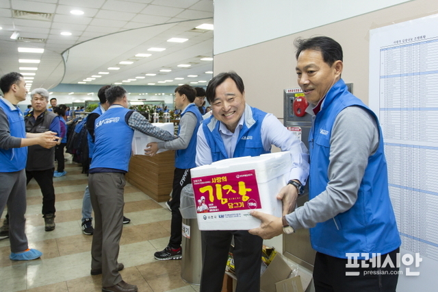 한국항공우주산업㈜(KAI)이 연말을 앞두고 지난 7일 경남 사천 본사에서 ‘사랑의 김장김치 나눔’봉사활동을 펼쳤다.