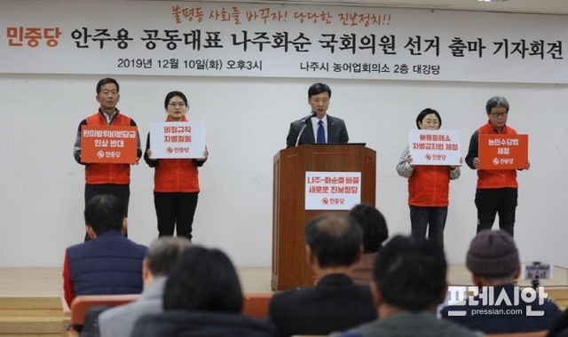 안 대표는 10일 오후 3시 나주 농어업회의소 2층 대강당에서 기자회견을 갖고 “2020년 4월 15일 치뤄지는 21대 총선에서 나주-화순 지역 민중당 후보로 출마한다 고 밝혔다.