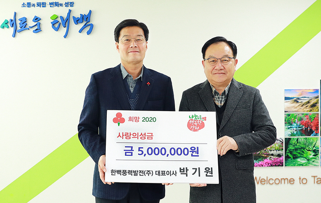 한백풍력발전㈜, ‘희망2020 나눔’ 성금 기탁
