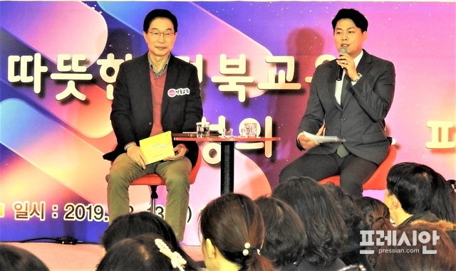 임종식 경북교육감은 13일 경주스위트호텔에서 열린 '소통공감 따뜻한 경북교육 경주 타운홀 미팅'에서 학부모, 시민들과 함께 경주교육의 현안을 두고 토론했다.