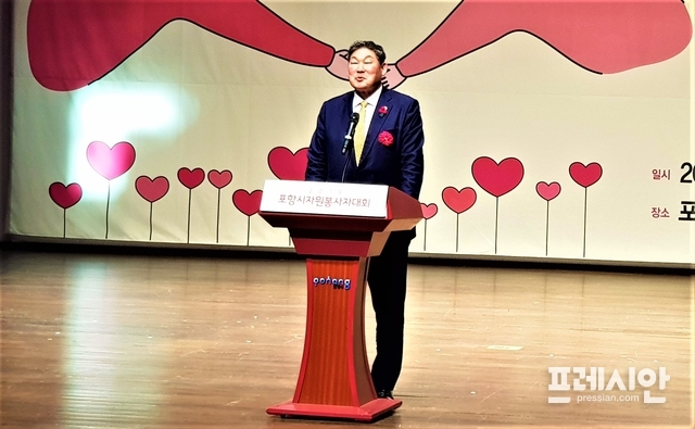 장경식 경북도의회 의장은 16일 포항시청 대잠홀에서 열린 '2019 포항시자원봉사자대회'에 참석해 1년 동안 소리 없는 봉사를 몸소 실천한 포항시 자원봉사자들을 격려하고 감사의 뜻을 전했다.