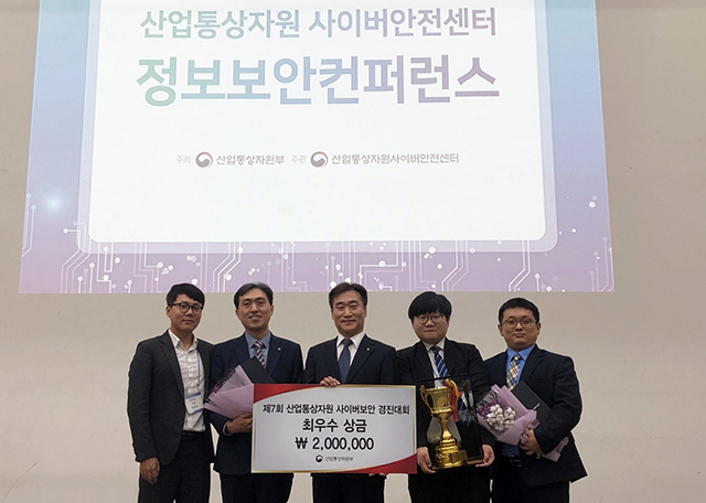 ▲19일 정부세종컨벤션센터에서 열린 ‘에너지·산업분야 정보보안 컨퍼런스’에서 사이버보안 경진대회 최우수상을 수상하고 있다. ⓒ강원랜드