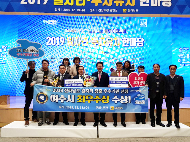 전라남도는 22개 시‧군을 대상으로 일자리 발굴, 일자리 지원, 차별화된 일자리 정책 등을 평가해 일자리창출 분야에 여수시를 최우수 시로 선정했으며 투자유치분야에서 우수시로 선정했다.
