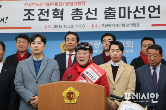 20일 내년 총선 예비후보 등록을 마친 한국당 조전혁 해운대갑 예비후보는 이날 오전 부산시의회 3층 브리핑룸에서 기자회견을 열고 "조국 사태, 유재수 사건, 울산시장 선거농단 등을 보면서 문재인 대통령이 취임사에서 말한 '기회는 평등하고 과정은 공정하고 결과는 정의로울 것'이라는 말이 헛소리임을 깨닫게 됐다. 이 무능하고 비도덕적인 정권 반드시 심판해야 한다"며 지지를 호소했다.
