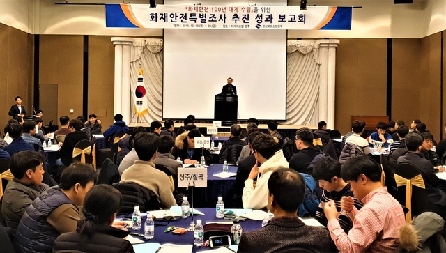 경북도 소방본부는 19일부터 양일간 경주 더케이호텔에서 소방공무원 90여명이 참석한 가운데‘화재안전특별조사 성과보고회’를 가졌다고 밝혔다.